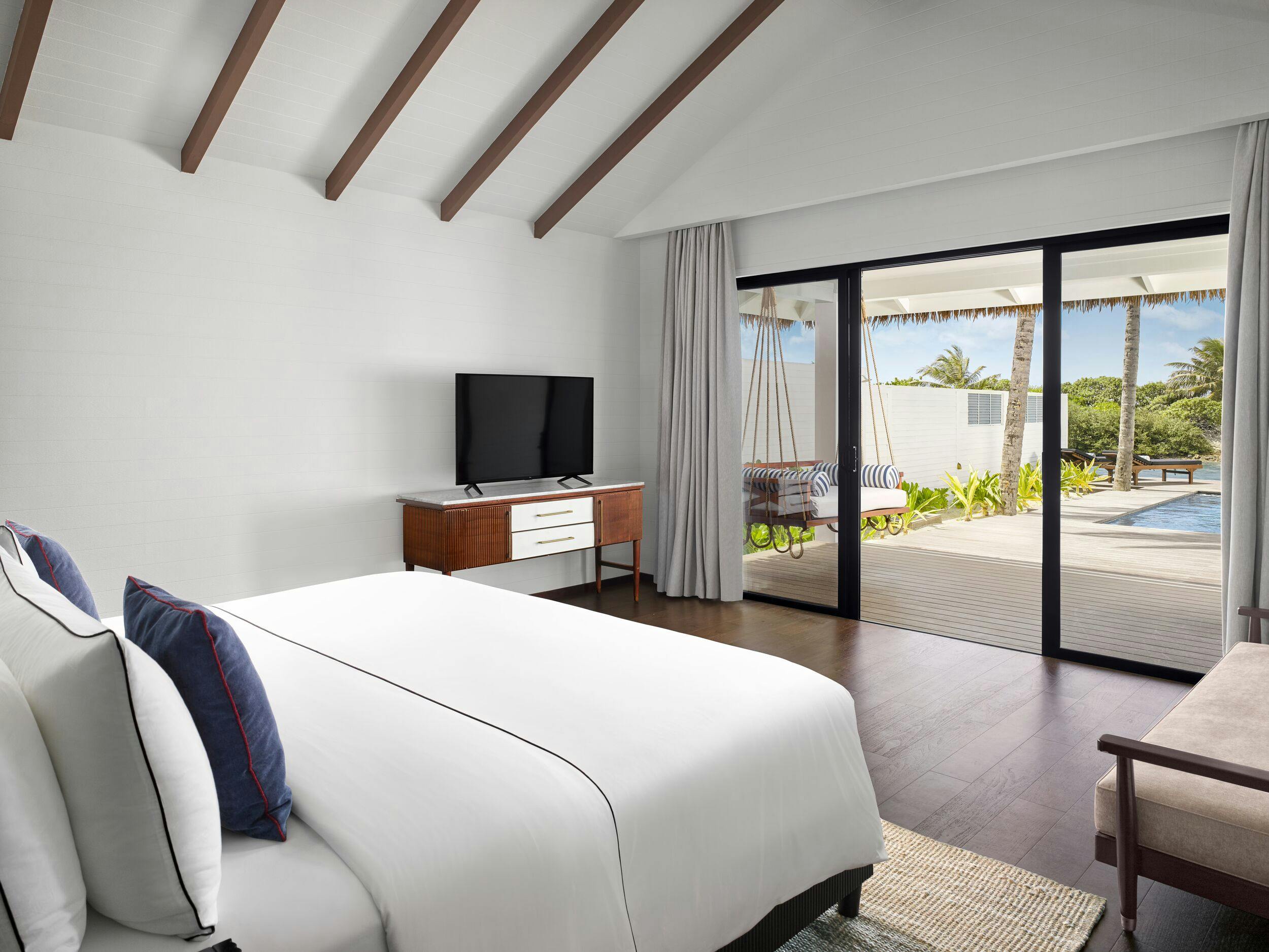 Indulge in luxury and privacy at your exclusive pool villa, tucked away in a secluded corner of the island, offering a serene and tranquil atmosphere.
